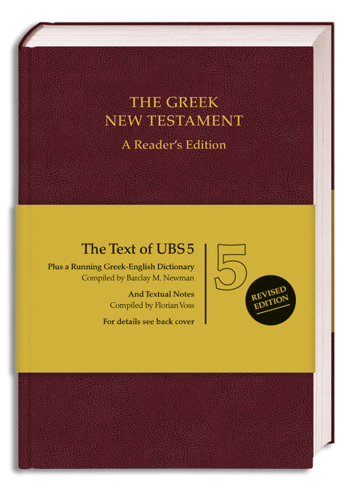Running Greek-English Dictionary: Compiled by Barclay M. Newman Textual Notes: Compiled by Florian VossFollowing intensive preparatory work, in 2014 the fifth edition of the UBS Greek New Testament (“UBS 5”) has been published. The most widely used edition of the Greek New Testament worldwide is thus now available in a fundamentally revised, improved edition. In this Reader’s Edition the Greek text of UBS 5 is combined with a running Greek-English dictionary at the bottom of each page in which difficult vocabularies are translated and parsing information for verb forms is given. Hence, this edition is an indispensable help for Greek students and pastors, enabling them to read the Greek text more fluently. In addition, textual notes at selected passages are highlighting the most important differences between major Greek manuscripts.The Institute for New Testament Textual Research (INTF) is a university institute in Münster (Germany). Its general task is research on the textual history of the Greek New Testament and the reconstruction of its initial text. Apart from the UBS Greek New Testament, the INTF also edits the Novum Testamentum Graece (“Nestle-Aland”) and the Editio Critica Maior for the German Bible Society.