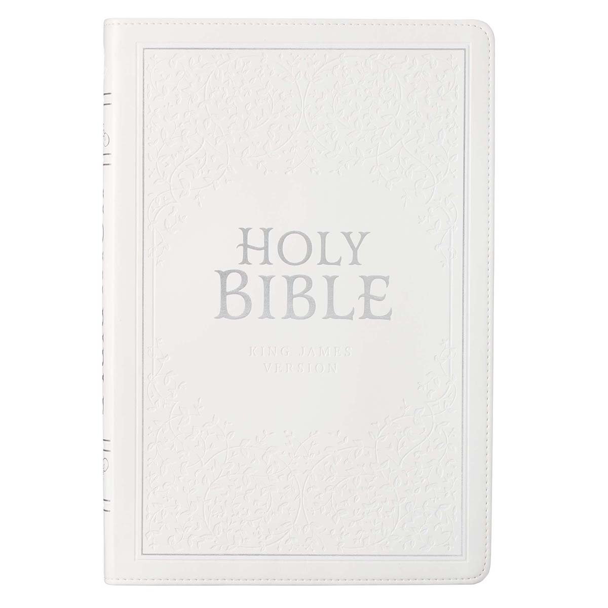 The KJV Thinline Large Print is an edition of the King James Version of the Bible with a white Faux Leather cover that is perfect as a gift for a special occasion. It features thumb-indexing tabs and the words of Christ in red.