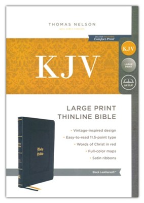 The KJV Large-Print Thinline Bible, Vintage Edition features a cover design that wraps God’s Word in an elegantly crafted cover which signifies, tastefully, the nostalgic history of the KJV translation. This Bible balances the convenience of a portable size with the benefit of a large print size. The 11.5 point type is printed in the exclusive KJV Comfort Print font, a font that has been researched and tested to provide the most comfortable reading experience possible. With more classic features such as: two column text, words of Christ is red, sewn bindings, and gilded page edges – the KJV Large-Print Thinline Bible, Vintage Edition is perfect for taking God’s special revelation, wrapped in traditional trappings, with you wherever your life takes you.