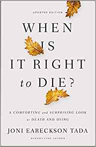 The terminally ill, the elderly, the disabled, the depressed and suicidal, can all be swept up into this movement of self-deliverance. Skip the suffering. Put a quick end to merciless pain and mental anguish. These are tempting enticements to the hurting. Joni doesn’t give pat answers. Instead, she gives warm comfort from God and practical help to meet the realities for those facing death.