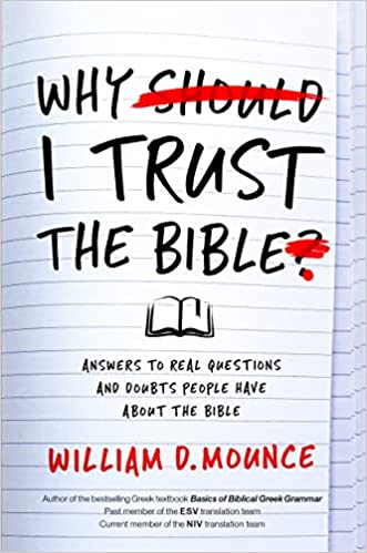 If you find yourself unable to answer questions such as these, but wanting to, Why I Trust the Bible by eminent Bible scholar and translator William Mounce is for you. These questions and more are discussed and answered in a reasoned, definitive, and winsome way.