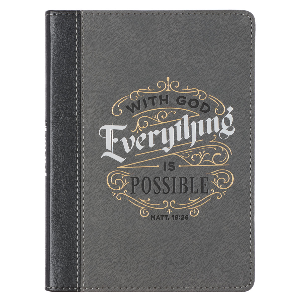 Encourage a recent grad headed off to college when you give the With God Everything Faux Leather Handy-Sized Journal as a farewell gift or wrap a copy for a friend going through some of life’s challenges. The With God Everything is Possible Faux Leather Handy-Sized Journal will help her sort through her thoughts while reminding her of the One for whom nothing is impossible.